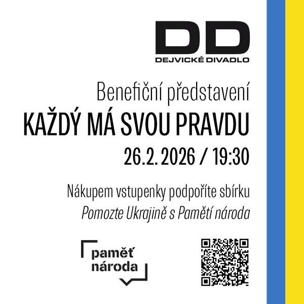 Benefičním představením Každý má svou pravdu 26. 2. se v rámci Týdne pro Ukrajinu připojujeme k podpoře sbírky Pomoc Ukrajině s Pamětí Národa.